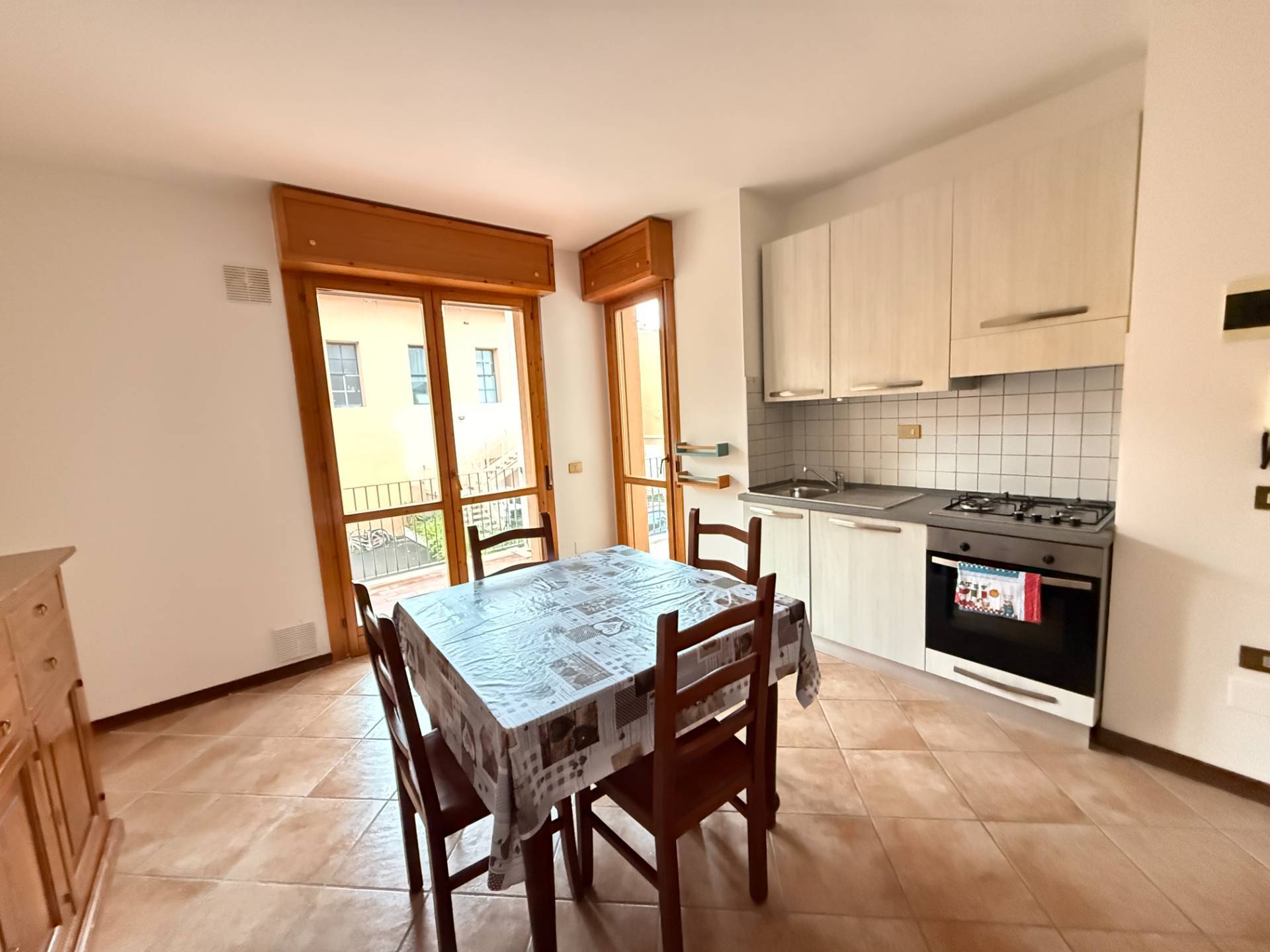 In ottimo contesto condominiale in zona tranquilla e riservata, appartamento composto da soggiorno con angolo cottura, ampio disimpegno notte, camera matrimoniale, camera media a bagno con finestra e due ampi balconi.