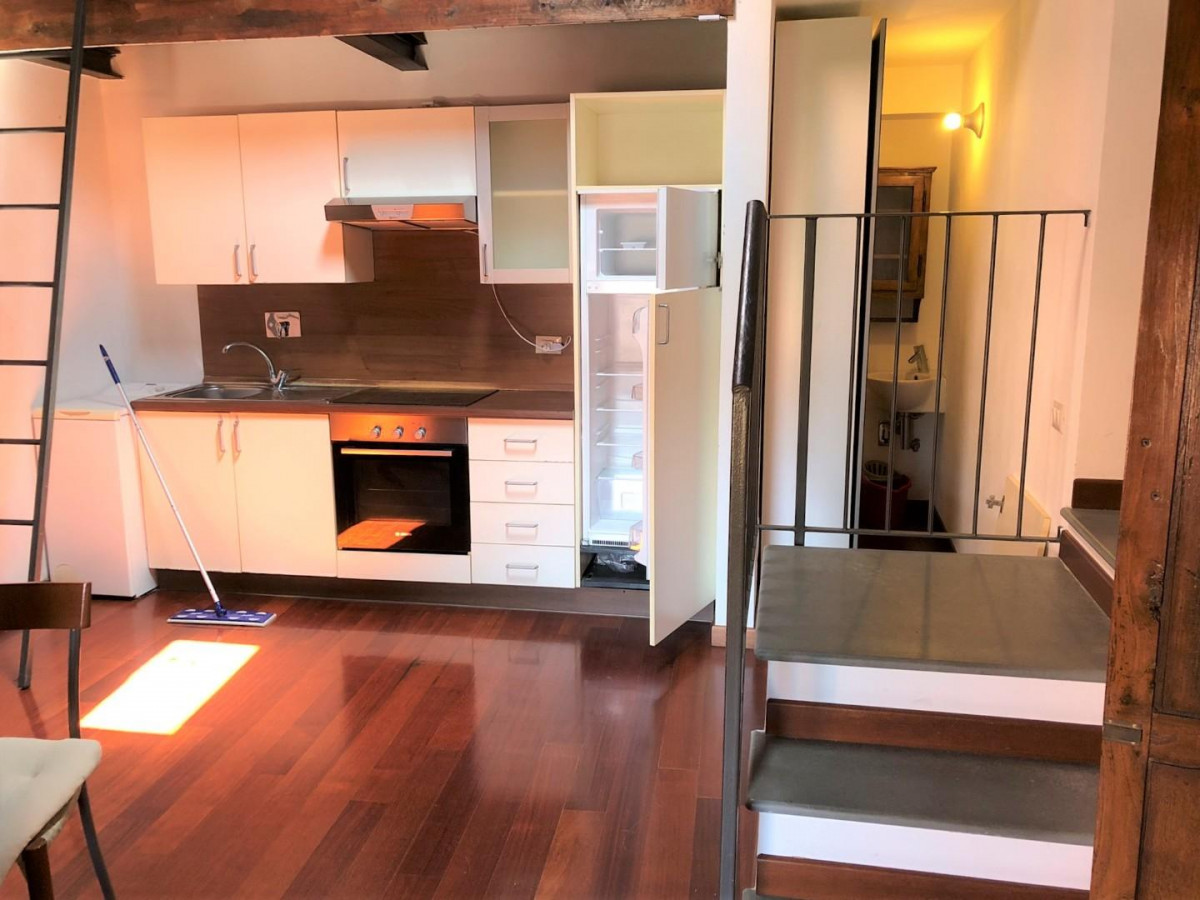 In piccola palazzina antica, al secondo ed ultimo piano, bell'appartamento molto luminoso e completamente ristrutturato composto da ingresso, piccolo vano ripostiglio, soggiorno, angolo cottura, soppalco uso studio o camera, disimpegno, bagno con doccia e camera matrimoniale. Ottime rifiniture: pavimenti in parquet, soffitti alti con travi e mezzane, infissi termici, portoncino blindato, sanitari sospesi. L'appartamento è libero e parzialmente arredato. Posizione centralissima ma particolarmente silenziosa.