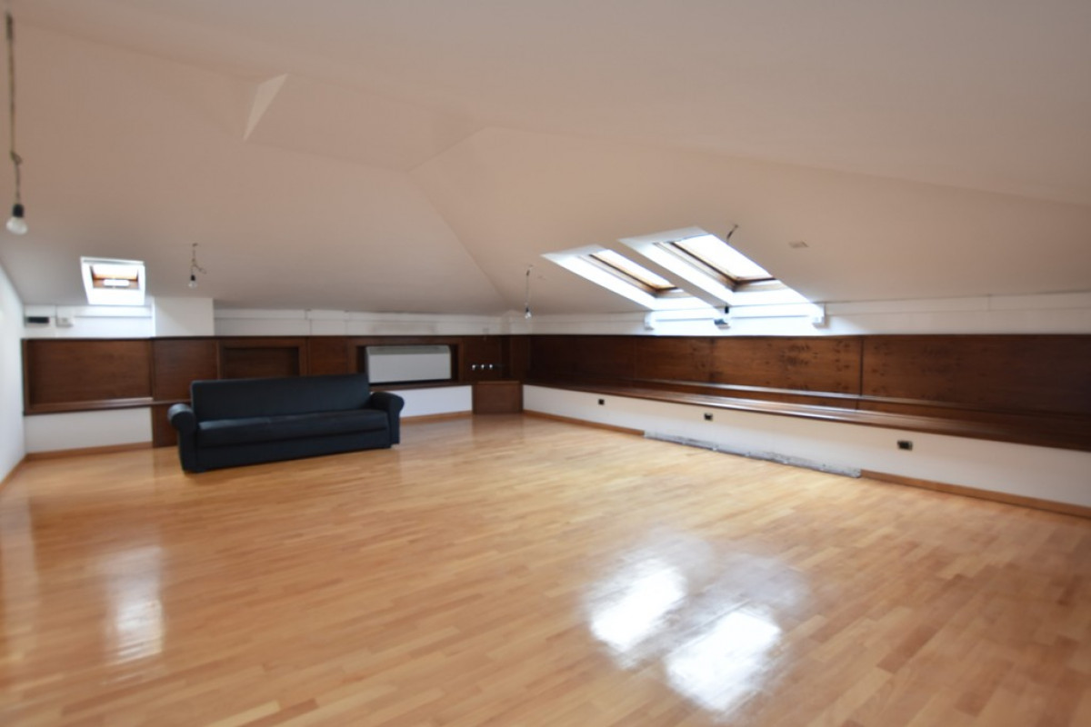 Le scale e l'ascensore proseguono e conducono nel piano mansardato dove troviamo due grandissimi e luminosissimi locali da poter sfruttare a seconda delle esigenze.